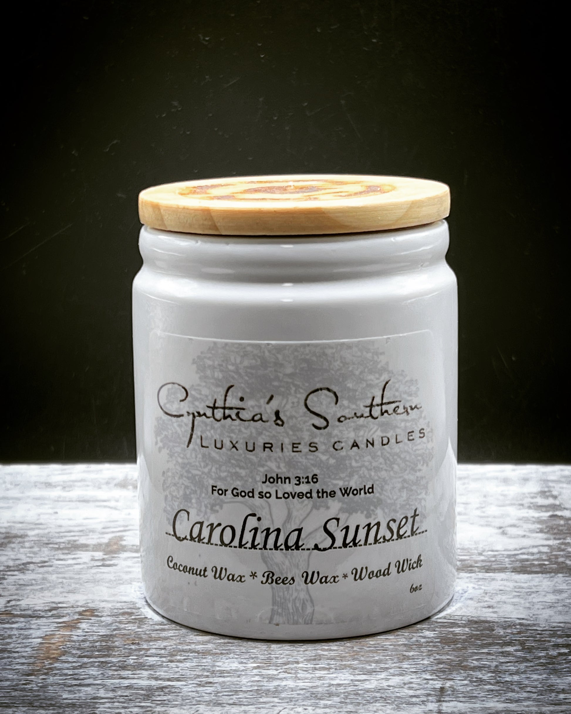 About| The "Carolina Sunset" candle is a captivating scent beginning with hints of orange, grapefruit, and infused with sage that enhances the natural earthy quality. This fragrance is infused with natural essential oils, including sage, lavender, and orange.