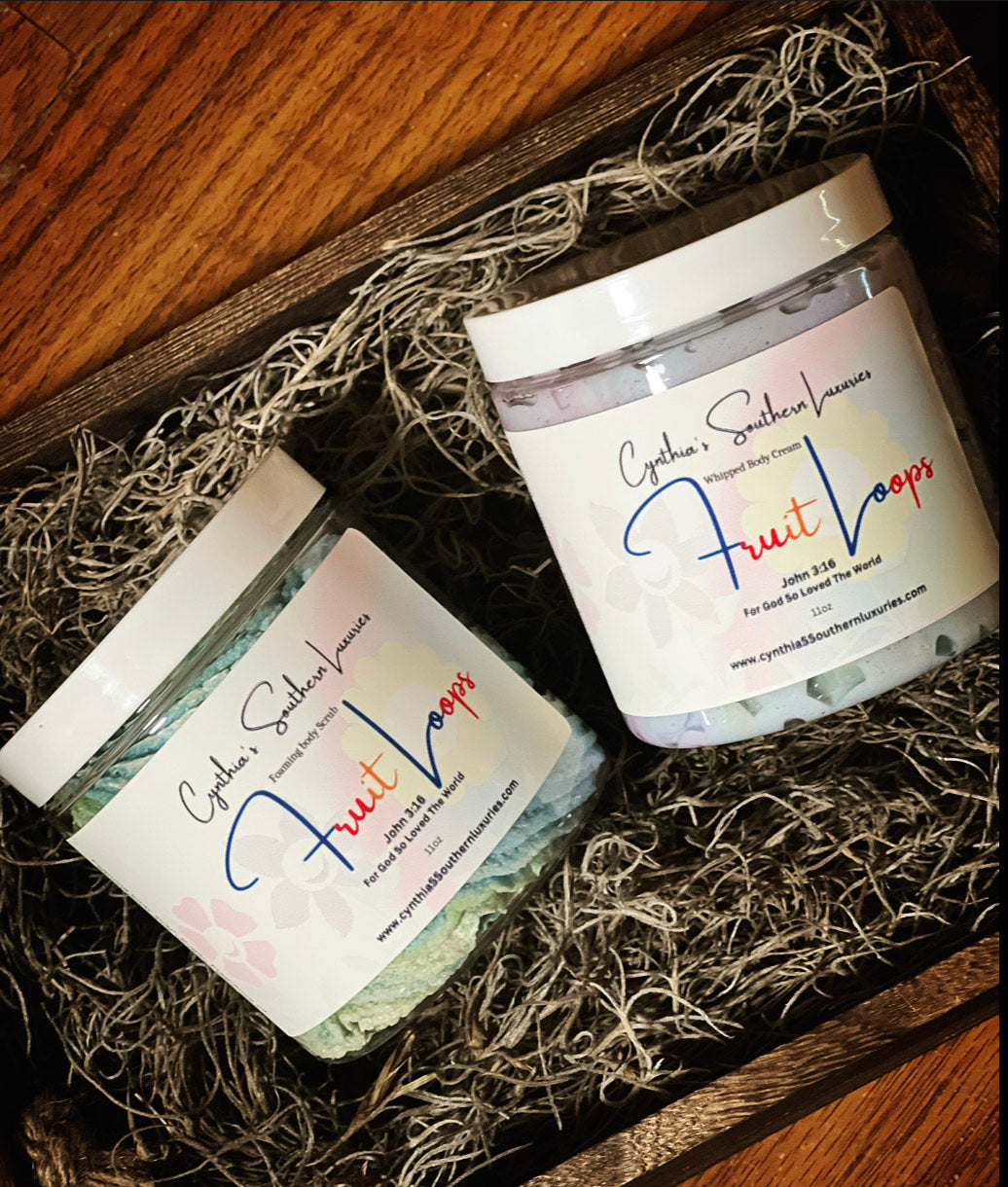 About| After exfoliating with Foaming Butter Scrubs, by Cynthia's Southern Luxuries, show your skin some love by nourishing it with our Whipped Body Cream! Cynthia's Southern Luxuries Just Launched our new line of Body Creams! Our Body creams are a thick creamy moisturizer that leaves your skin silky soft. Our body creams are different from our whipped body butters. Our body creams are water based. They are enriched with jojoba oil, carrot seed oil, sunflower oil, olive oil, avocado oil, and vitamin E known to help regenerate the skin. And yes, they are still enriched with Shea butter, Mango butter, and Cocoa butter. Because these are creams and not body butters, they don't have the greasy feel to them, but do have a sheen.